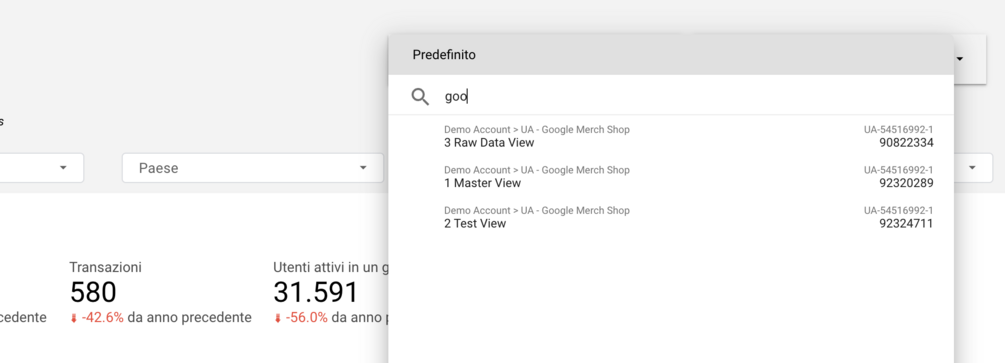 You can see the default settings based on the last 30 days' data; the Google Analytics dropdown provides a fast and efficient switch in the top bar near the date selector.